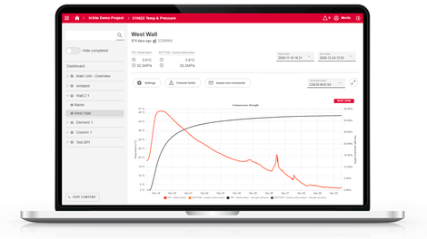 Analyze in real time the temperature and strength development of the concrete in the web app - on your smartphone or PC.