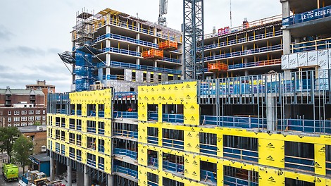 Constructing a 12-story, 31,000-square-foot-per-floor building in a dense urban area presented significant challenges. Limited equipment space, tight deadlines, and complex design features required solutions beyond conventional construction methods. PERI USA provided those solutions.